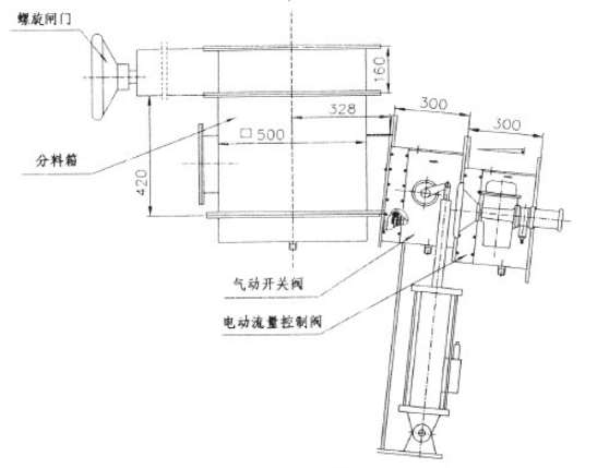 庫底卸料裝置由庫底螺旋閥、庫底分料箱、氣動(dòng)開關(guān)閥、電動(dòng)流量控制閥及卸料溜子組成(見圖一),用于水泥生料粉或水泥庫底卸料。庫底卸料裝置能自動(dòng)調(diào)節(jié)卸料流量且均勻,其結(jié)構(gòu)合理,操作維護(hù)簡單方便,可設(shè)三個(gè)下料口,用戶也可選用庫側(cè)卸料裝置(見圖二)。